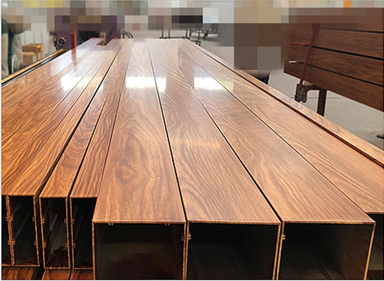 木纹转印工艺以粉末喷涂或电泳涂装为基础,以高温升华热浸原理为基础,经加热加压后,将转印纸或转印膜上的木纹图画,快速的转印并浸透到已经喷涂或者电泳好的材料上。